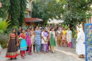 Im Haupthaus werden 21 Schwestern- Schülerinnen ausgebildet. Hier treffen wir Alekya, die für 1 Jahr durch AV für ihr Medizinstudium unterstützt wurde. Sie möchte gerne noch die sehr teure 3-jährige Beamtenlaufbahn absolvieren. Die Kosten betragen allerdings pro Jahr 7,00,000/- Rs. (9.350 Euro).