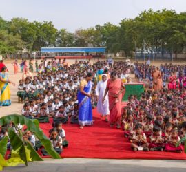 Ein Airbus A350 bringt mich am 4. Januar in nur 6:30 Stunden von München nach Delhi. Mit einem Anschlussflug erreiche ich den Flughafen in Hyderabad, wo mich die Schwestern Rajamma und Bridgit mit einem Tuch und einer Blumengirlande herzlich empfangen.